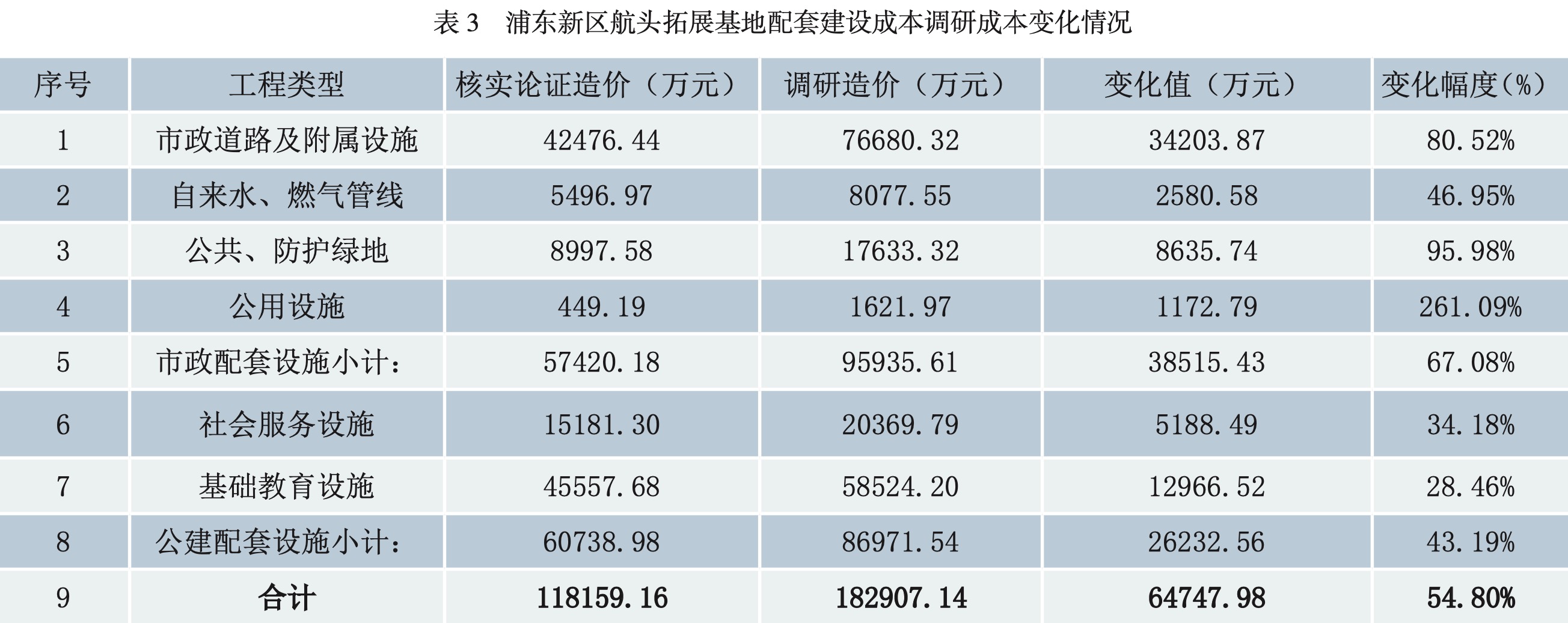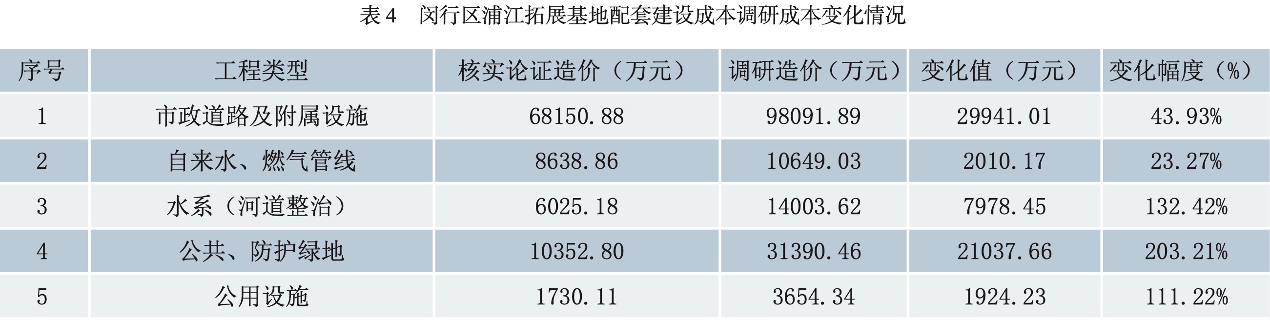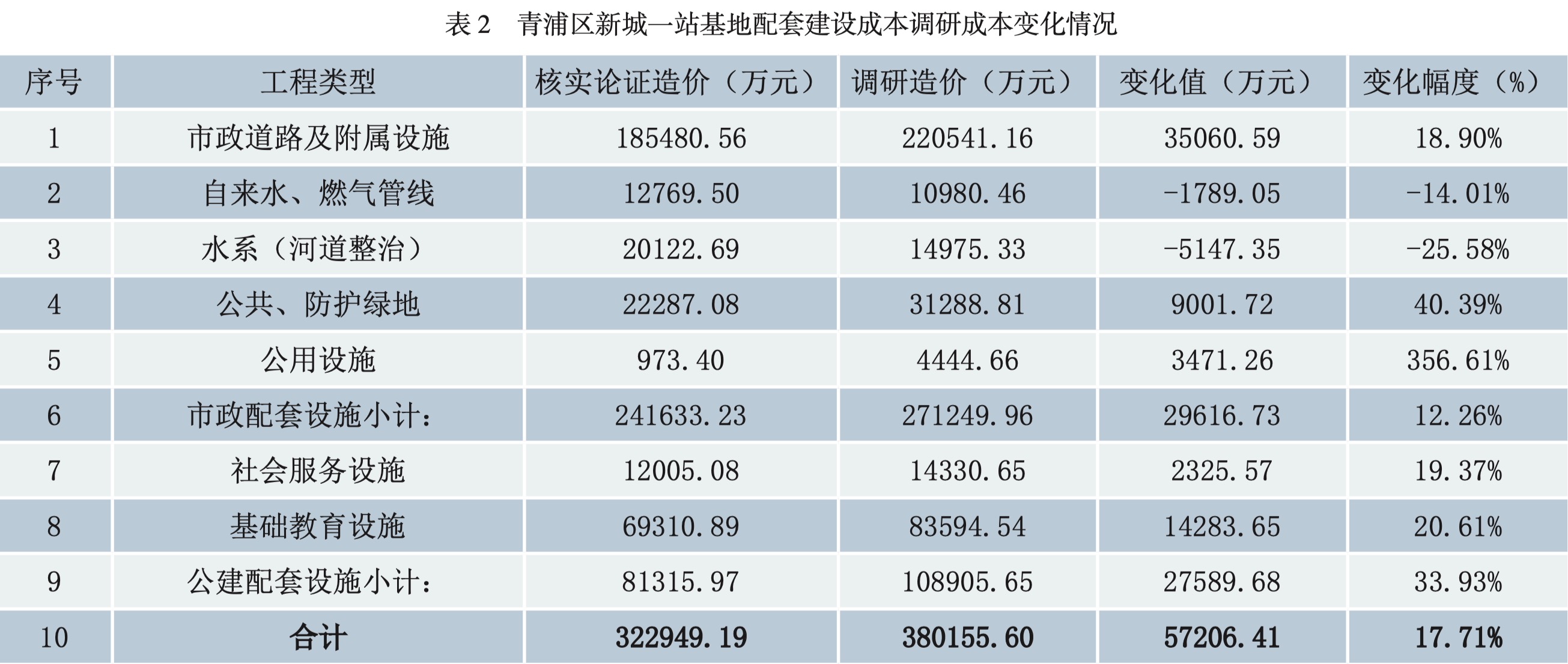 (1)公用管線工程由行業(yè)主管部門實施建設(shè),單位投資指標(biāo)高于核證指標(biāo)。(2)公建項目中市政接口和水電配套工程成本普遍偏高于核證標(biāo)準(zhǔn)。(3)道路工程中附屬設(shè)施(交通工程、路燈工程、行道樹工程、臨時工程等)實際造價指標(biāo)普遍高于原核實論證取定指標(biāo)。本項內(nèi)容引起的投資增幅約為4%~19%。