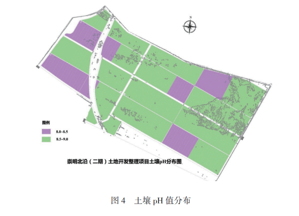 1.適宜植物生長的土壤pH值在5.0~8.3之間,而工程區(qū)域20%為pH8.0~8.5之間的堿性土壤,80%為pH8.5~9.0的強堿性土壤(詳見圖4)。