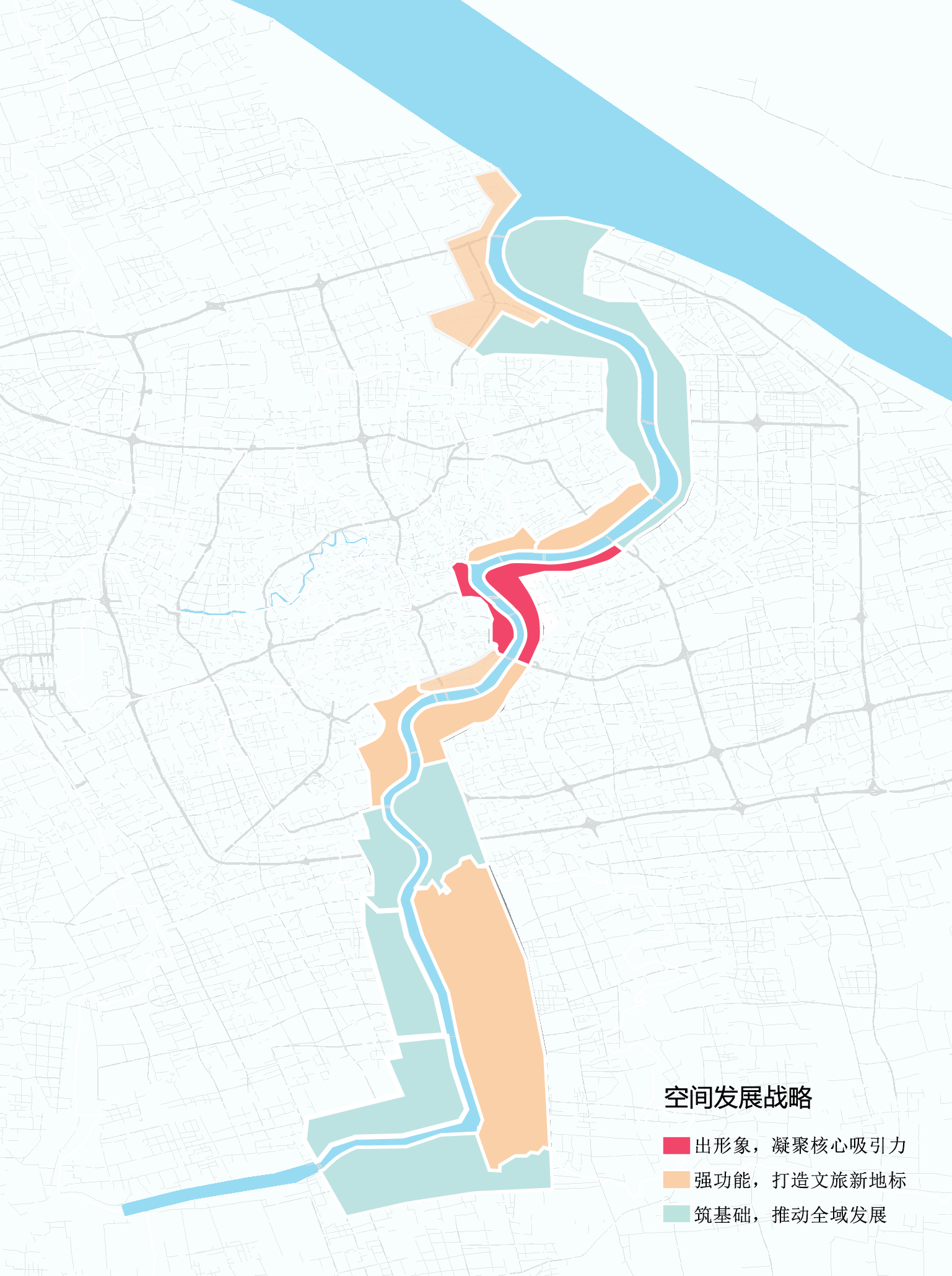 依托蘇州河特有的自然景觀和人文景觀,緊密結(jié)合沿河文化和旅游資源、碼頭、配套設(shè)施和空間,融入各區(qū)段的文化個(gè)性、資源特色、發(fā)展特點(diǎn),推動(dòng)優(yōu)質(zhì)資源的活化利用、多元功能導(dǎo)入、公共景觀空間優(yōu)化,形成差異化的文旅功能布局。