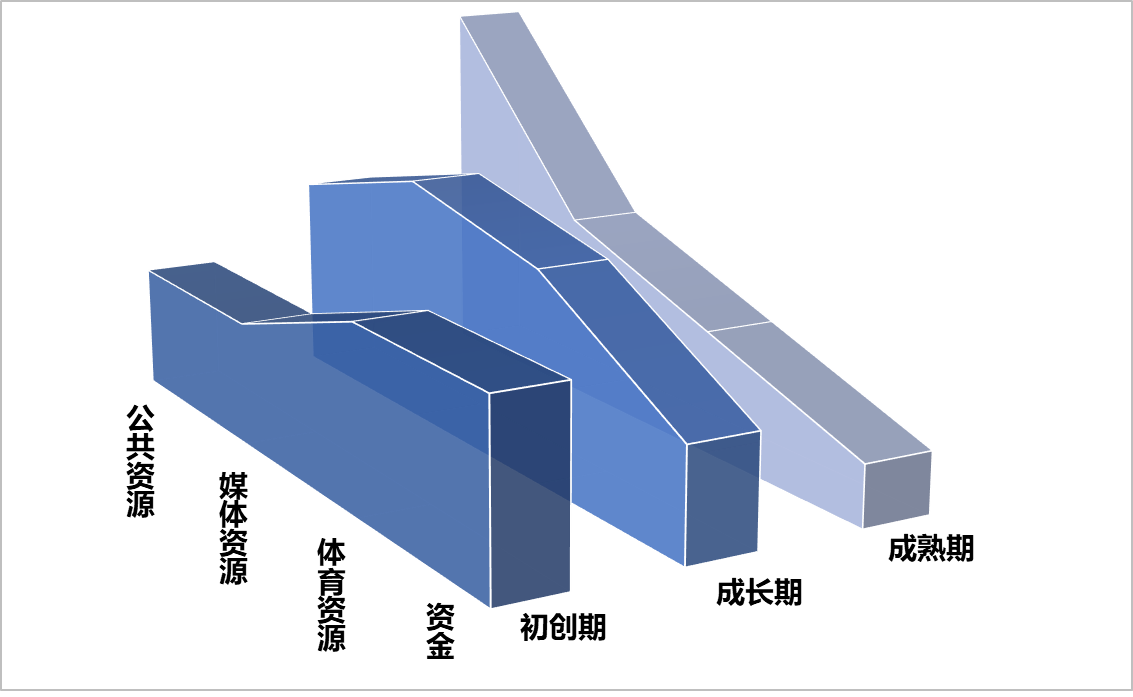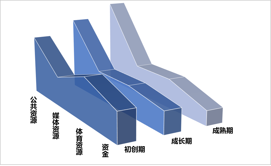 規(guī)律二:初創(chuàng)期賽事對(duì)資金和體育資源的需求更高。賽事初創(chuàng)期,辦賽主體的目標(biāo)是保障賽事落地,資金和體育資源是核心。