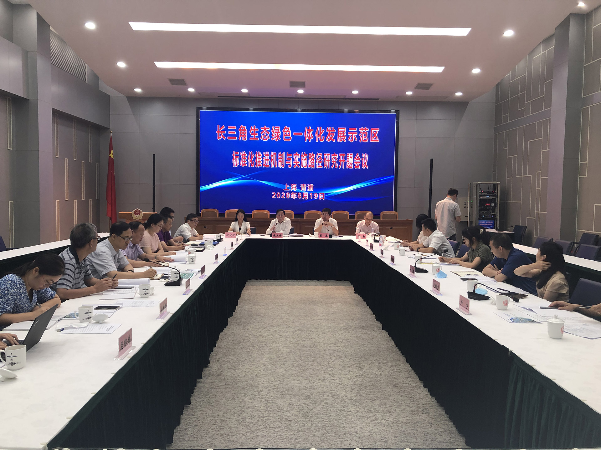2020年8月19日,上咨公司副總經(jīng)理王昊、社會風險評價部、上咨長三角分公司相關負責人參加了“長三角生態(tài)綠色一體化發(fā)展示范區(qū)標準推進機制與實施路徑研究課題”開題會。
