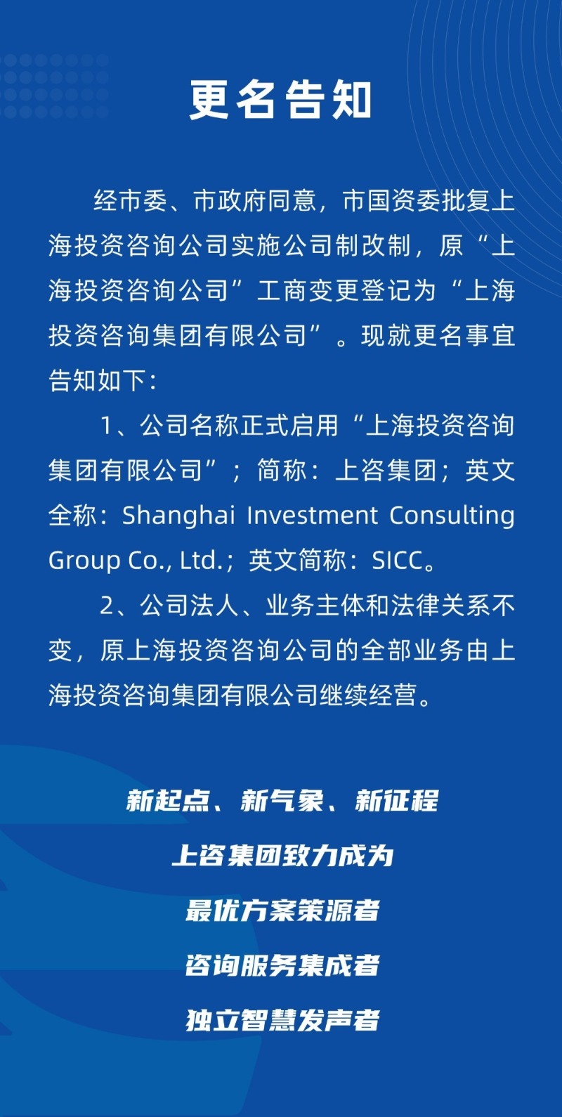 官宣更名!上咨集團!