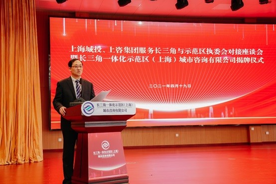 2021年4月19日上午,上咨集團、上海城投圍繞深入服務長三角與示范區(qū)執(zhí)委會召開對接座談會。會上,由兩大集團“強強聯手”、共同組建的長三角一體化示范區(qū)(上海)城市咨詢有限公司(以下簡稱“長三角城市咨詢公司”)正式揭牌。