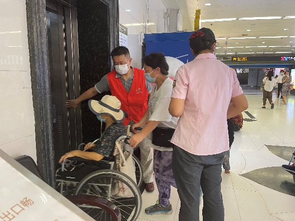 支部黨員分為四組,分別在站點(diǎn)入口閘機(jī)處、出口閘機(jī)處、自動(dòng)售票處和無(wú)障礙電梯處提供志愿服務(wù)。