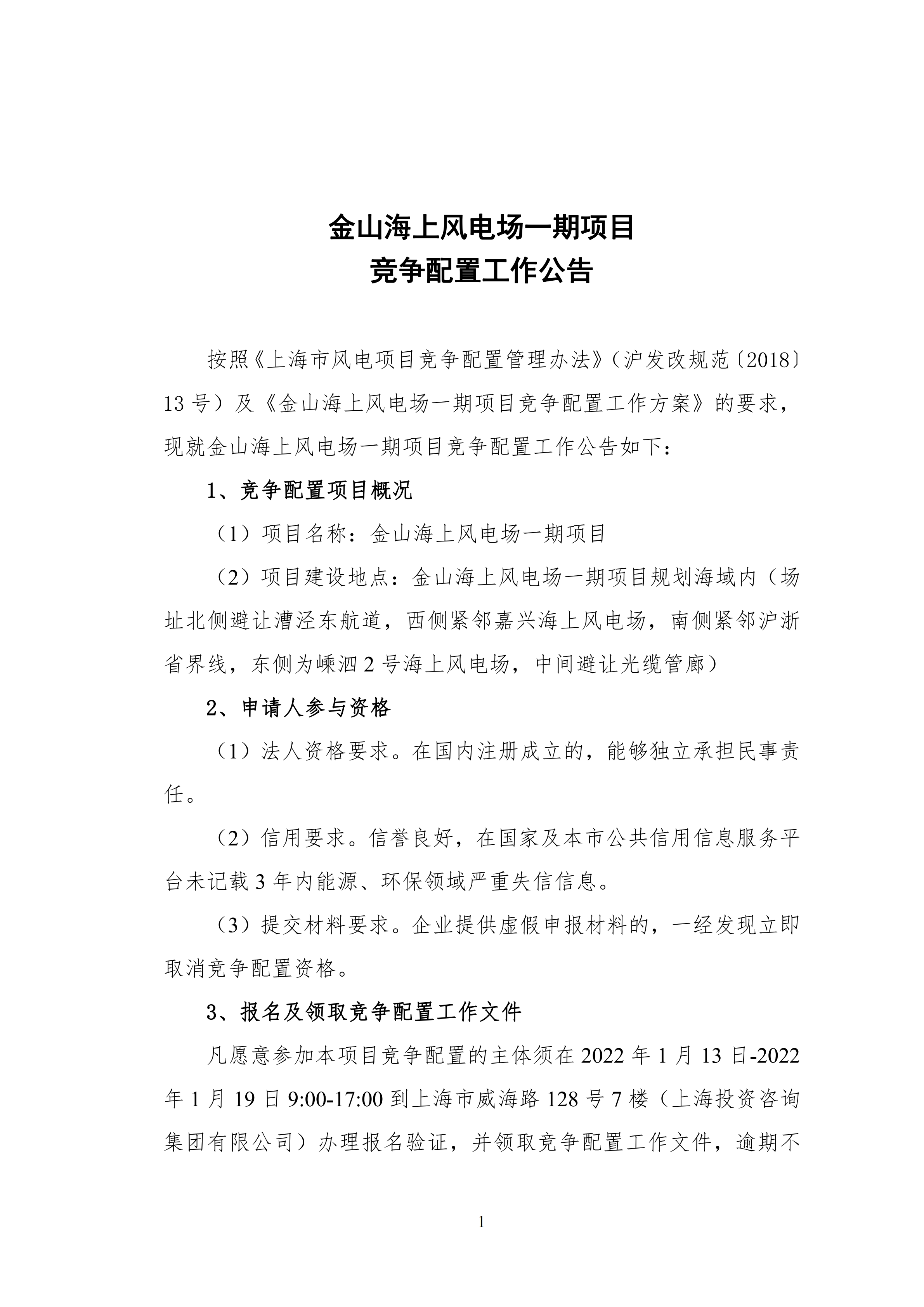 金山海上風(fēng)電場(chǎng)一期項(xiàng)目競(jìng)爭(zhēng)配置工作公告