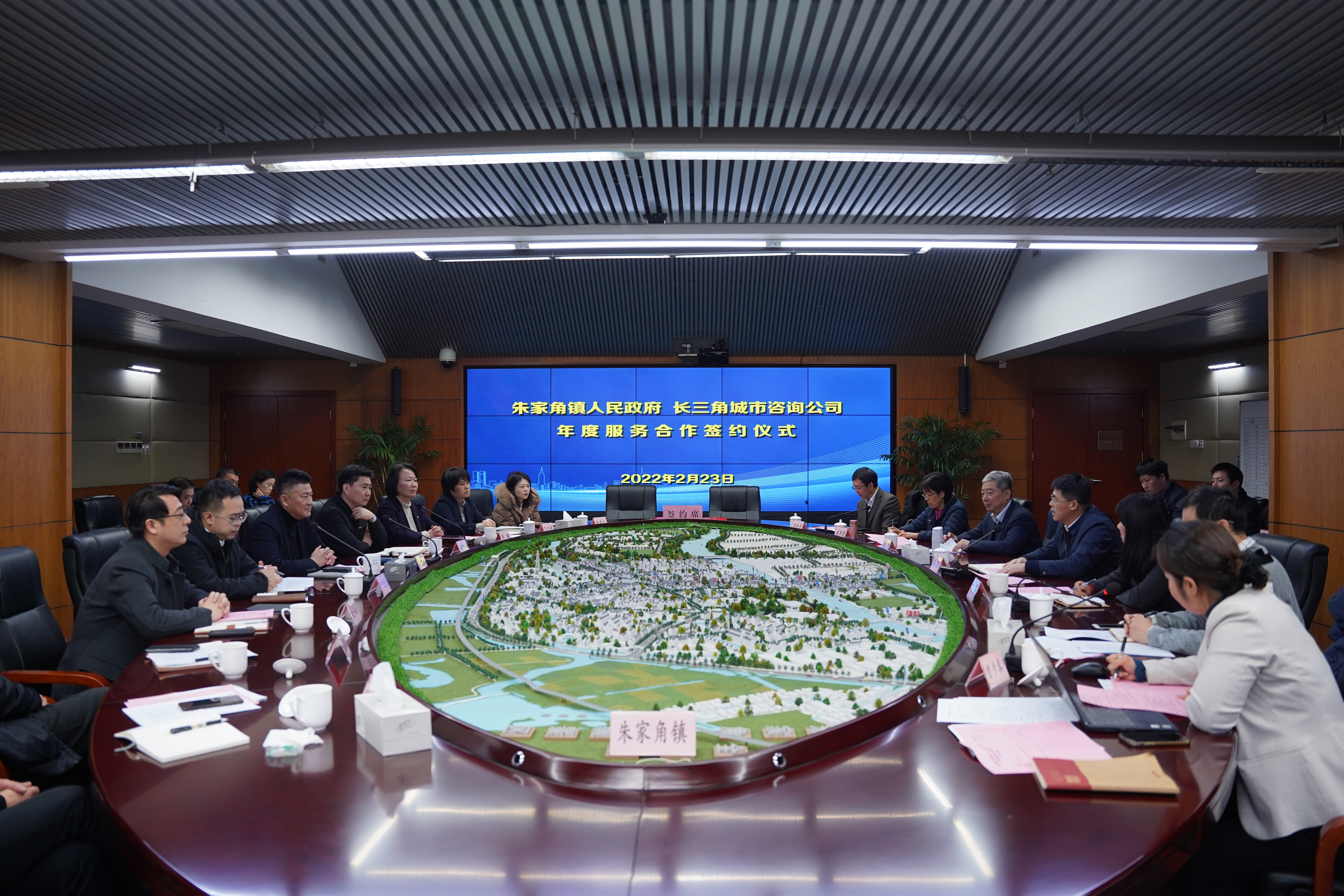 2022年2月23日,長(zhǎng)三角一體化示范區(qū)(上海)城市咨詢有限公司與青浦區(qū)朱家角鎮(zhèn)人民政府舉辦年度服務(wù)合作簽約儀式