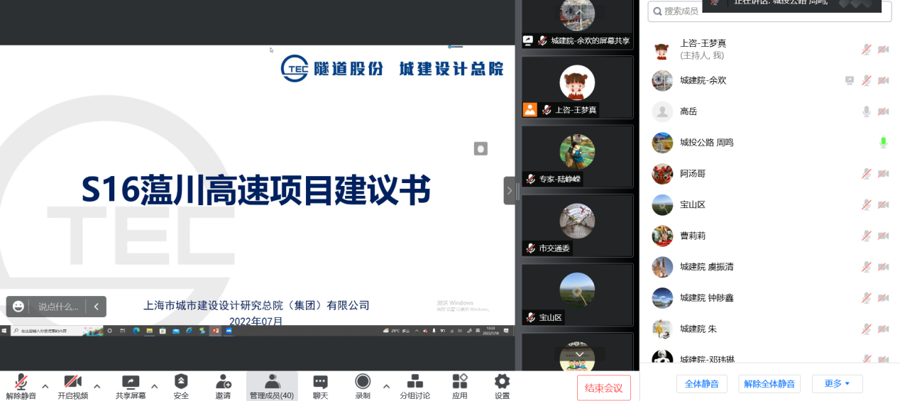 上咨集團立足國家戰(zhàn)略,以專業(yè)咨詢服務(wù)助力本市重大項目決策,持續(xù)為重大基礎(chǔ)設(shè)施建設(shè)建言獻策。2022年7月18日,上咨集團組織召開S16蕰川高速(G1503-省界)新建工程項目建議書專家評估會。會議邀請了城市規(guī)劃、道路工程、交通管理、橋梁工程、排水工程和概預(yù)算等專業(yè)的7位專家,市發(fā)改委、市交通委、市住建委、市規(guī)劃資源局、市水務(wù)局、市生態(tài)環(huán)境局、市綠化市容局、市交警總隊、市道運局、寶山區(qū)政府、城投公路集團、上港集團、電力公司、設(shè)計單位等單位代表出席了會議。專家和與會代表認(rèn)真聽取了項目匯報,對工程建設(shè)的必要性和緊迫性、建設(shè)規(guī)模、建設(shè)內(nèi)容、建設(shè)方案、投資匡算等內(nèi)容進行了細致的分析和討論,提出了許多寶貴的意見和建議。市發(fā)改委對線上評估會的形式和成果表示認(rèn)可,并提出了下一步工作的要求和建議。