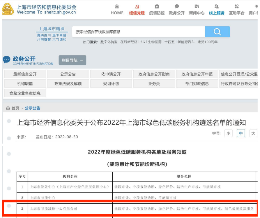 上海市節(jié)能減排中心成功入選“上海市經(jīng)信委綠色低碳服務機構(gòu)”名單
