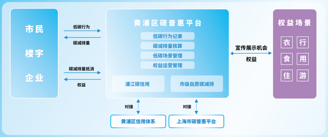 黃浦區(qū)碳普惠平臺以“綠色惠民”為宗旨,通過建立低碳行為的正向激勵(lì)機(jī)制,實(shí)現(xiàn)“踐行低碳行為→獲得碳減排量→減排量兌換權(quán)益”的閉環(huán)。平臺圍繞綠色出行、循環(huán)利用、減塑限塑等建立了一批與市民低碳生活息息相關(guān)的低碳場景,并同步建立碳減排量的權(quán)益兌換商城,引導(dǎo)市民參與綠色消費(fèi),踐行低碳生活。